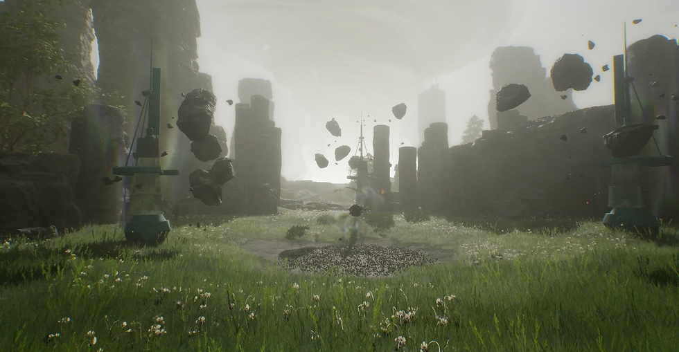 As a narrative level designer, I was responsible for defining narrative and navigation intentions from the player experience perspective, in collaboration with the creative director. The goal was to sequence each part of the game in several steps, to get as much detail as possible in terms of experience, player behavior and emotions felt. For each sequence, I detailed the player’s required actions as well as the associated events (cutscene triggers, environmental activations, animations, ...), while identifying the needs of the art and technical teams on moment-by-moment parts. We wanted to offer a coherent and varied pacing, both in gameplay and navigation, by exploiting the tools available to the player. This approach was based on a balance between gameplay phases, contemplative moments and narrative sequences. After that, I communicated closely with the environment artists, in order to share the narrative intentions, the level design issues and the overall vision of the desired experience on the game design team.